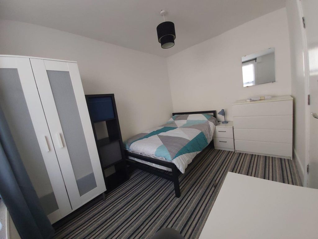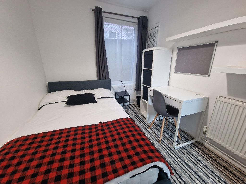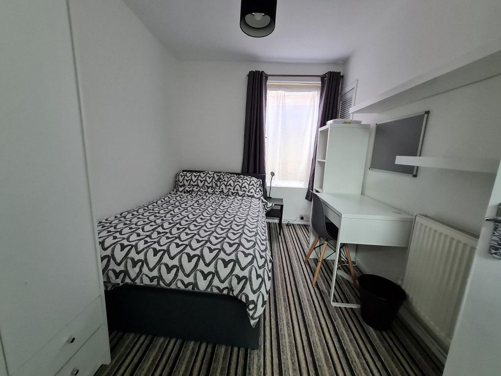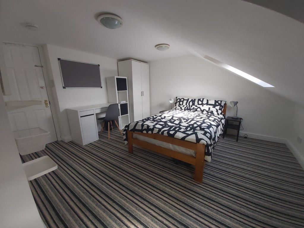 Set over three floors, the property features bright, airy bedrooms with good storage, all furnished with double beds and desks. Downstairs is a bathroom with shower over bath, basin, and toilet, while upstairs benefits from a modern walk-in shower room.